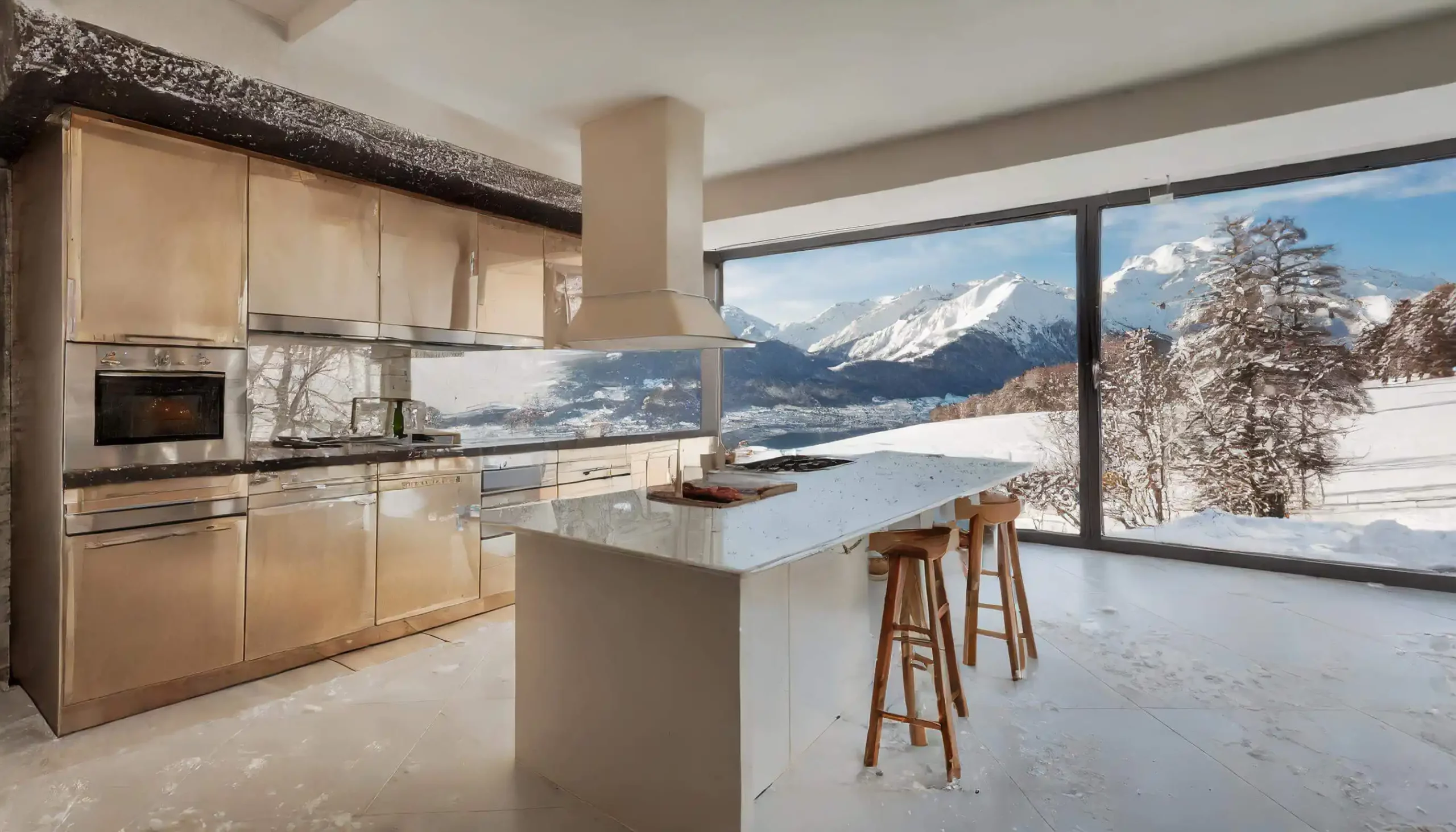 Alors que nous dressons le tableau de ce logement de ski luxueux, rappelons-nous qu’il s’agit d’une échappée belle fictive destinée à susciter l’envie de séjours hivernaux mémorables.